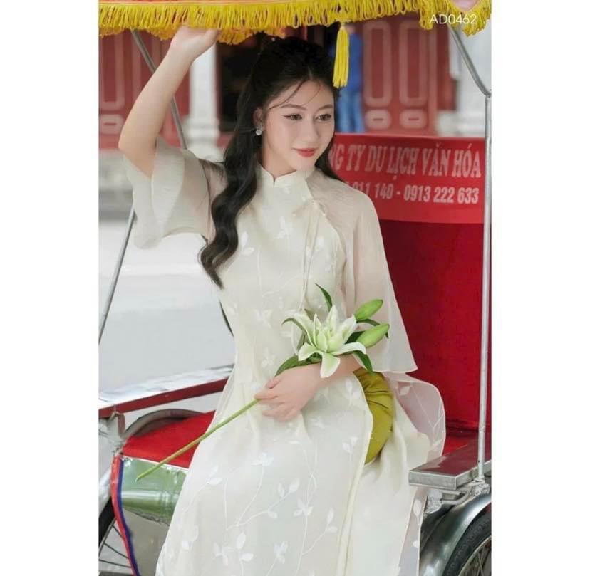 ÁO DÀI TƠ THÊU LÁ KÈM QUẦN LỤA DÀI