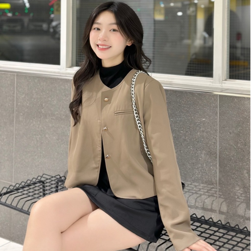 ÁO KHOÁC VEST BLAZER TRƠN KHUY ĐỒNG CỔ TRÒN 1 TÚI