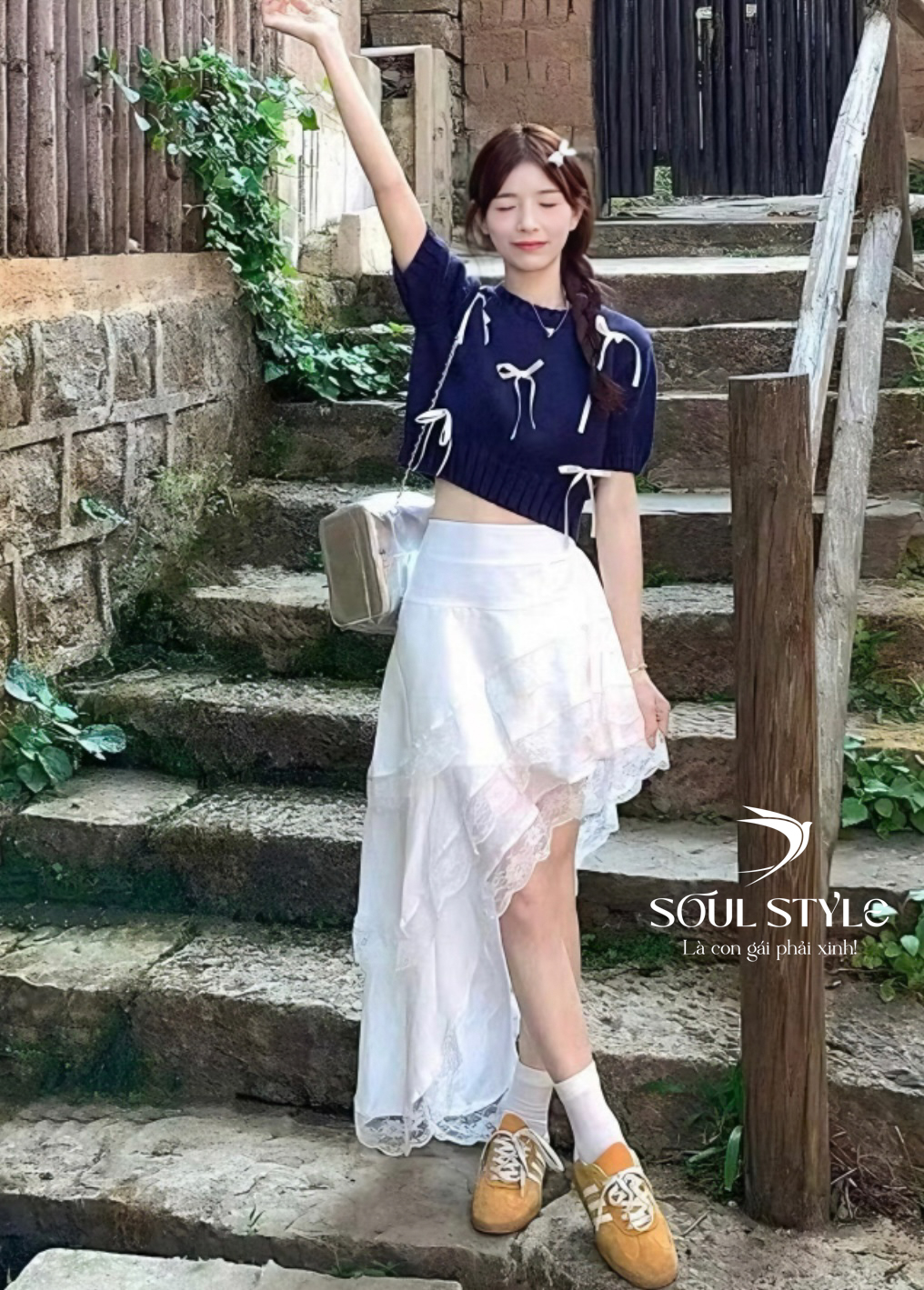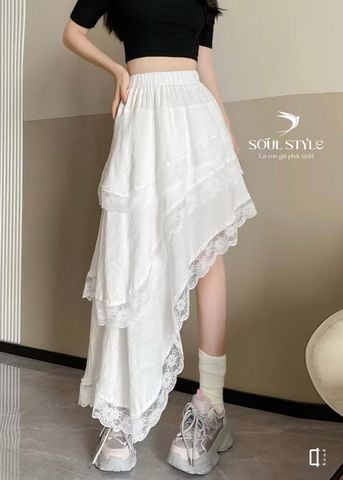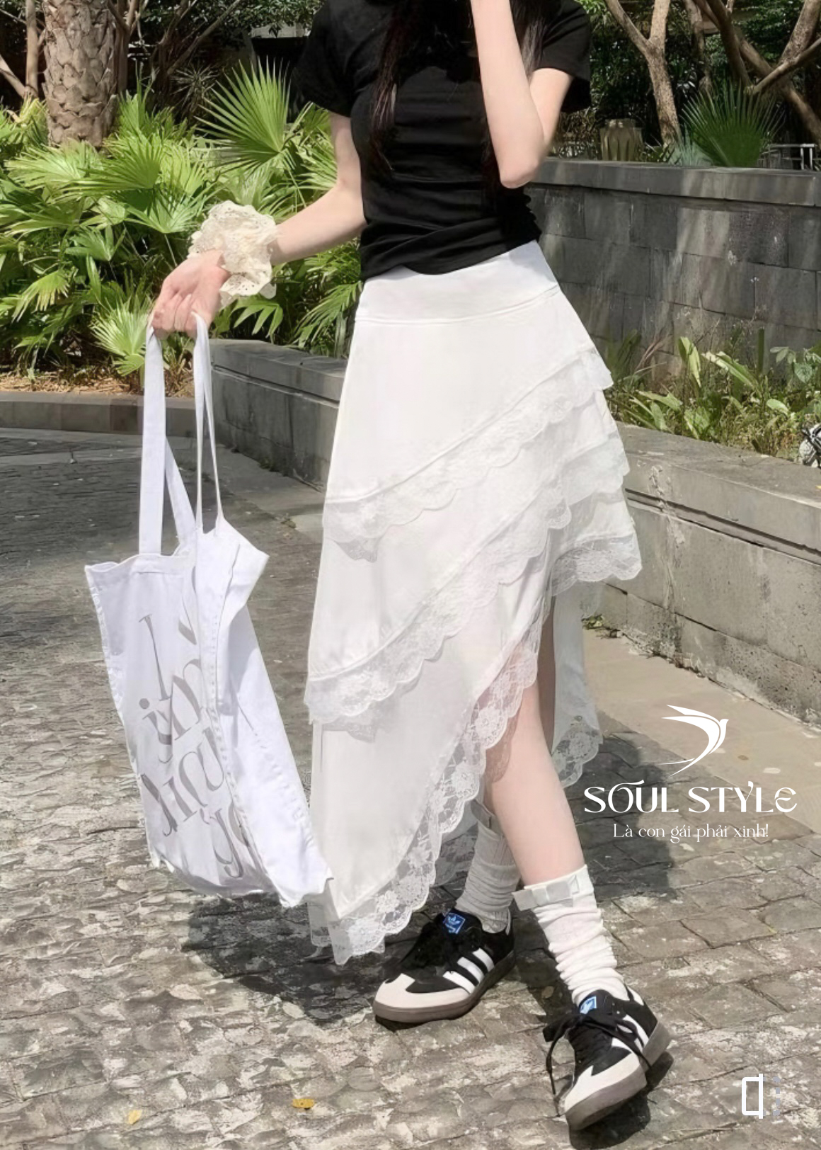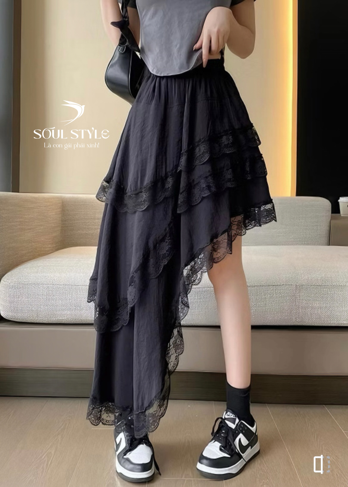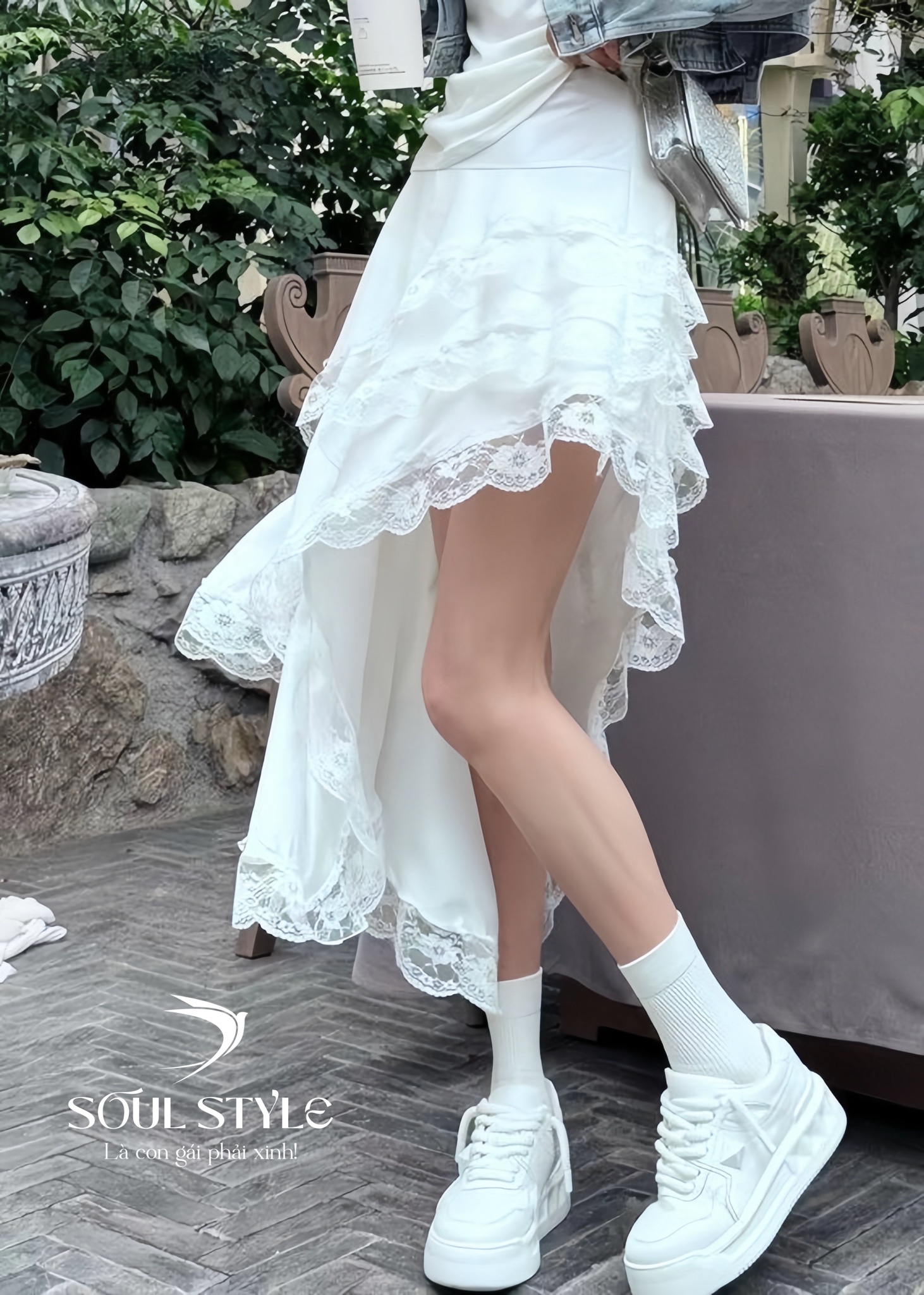 CHÂN VÁY BÁNH NƯỚNG REN TẦNG DÁNG DÀI LỆCH