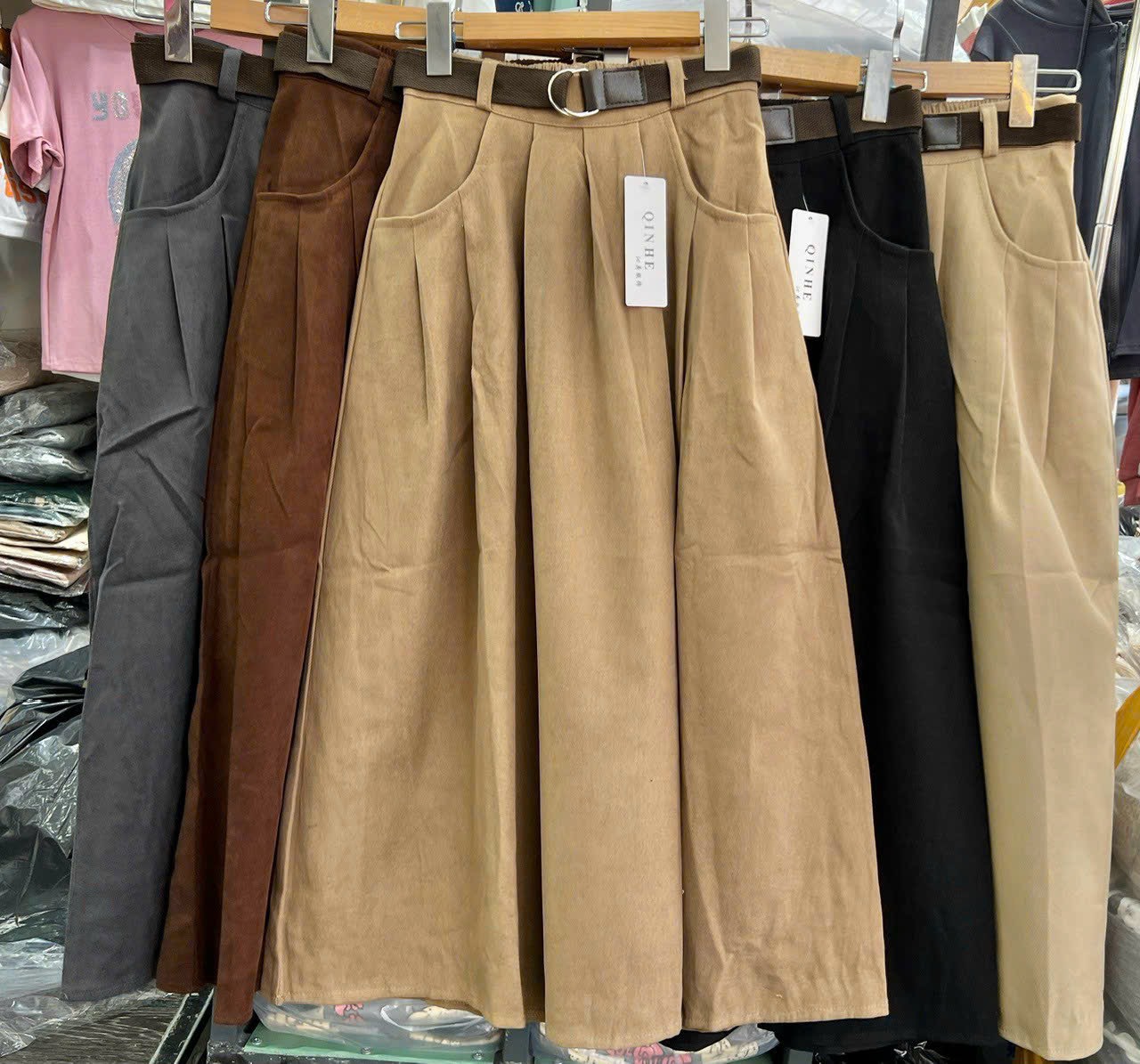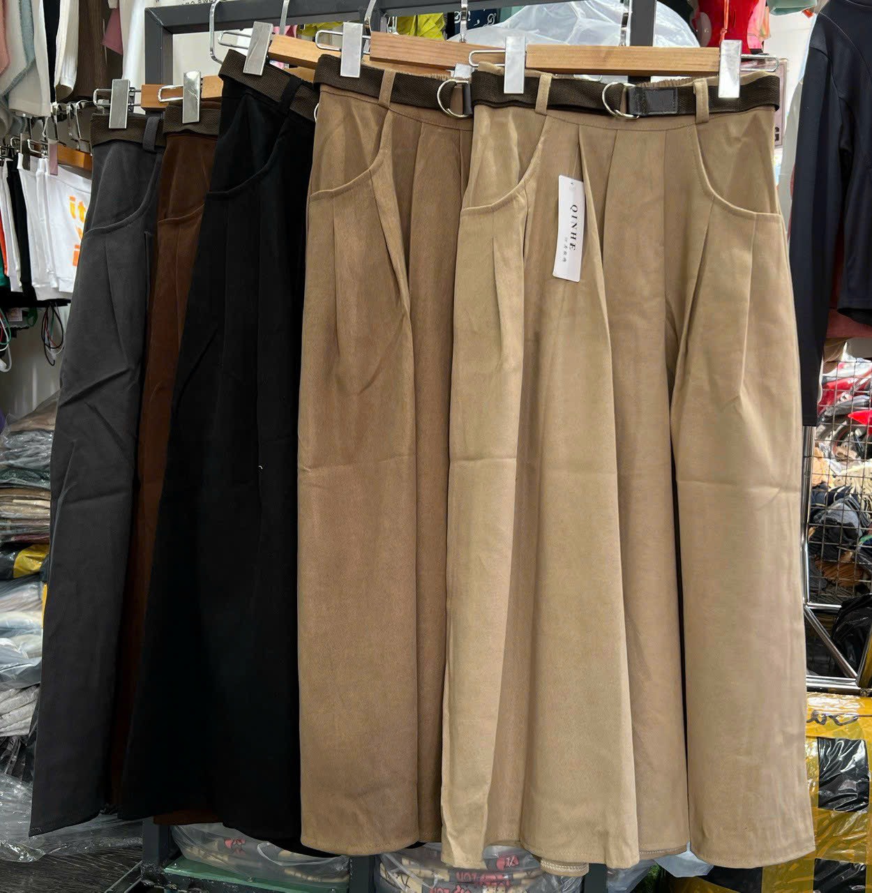 CHÂN VÁY NHUNG XẾP LY DÁNG A KÈM THẮT LƯNG