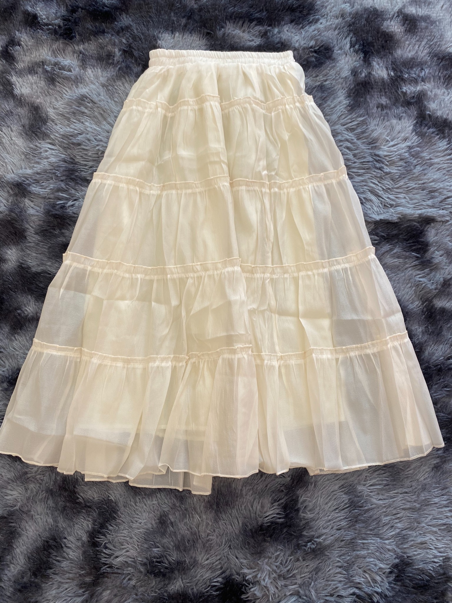 CHÂN VÁY TẦNG XÒE DÁNG DÀI TƠ ÓNG ÁNH
