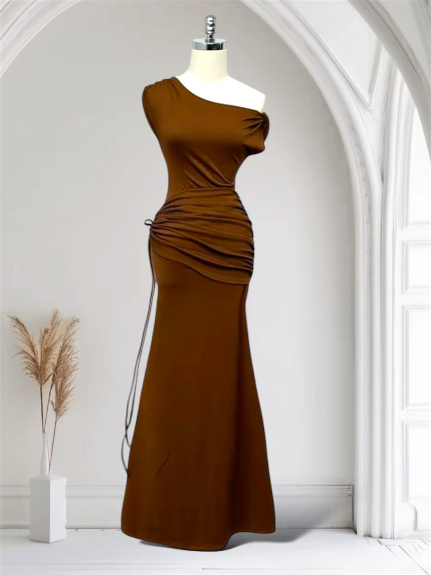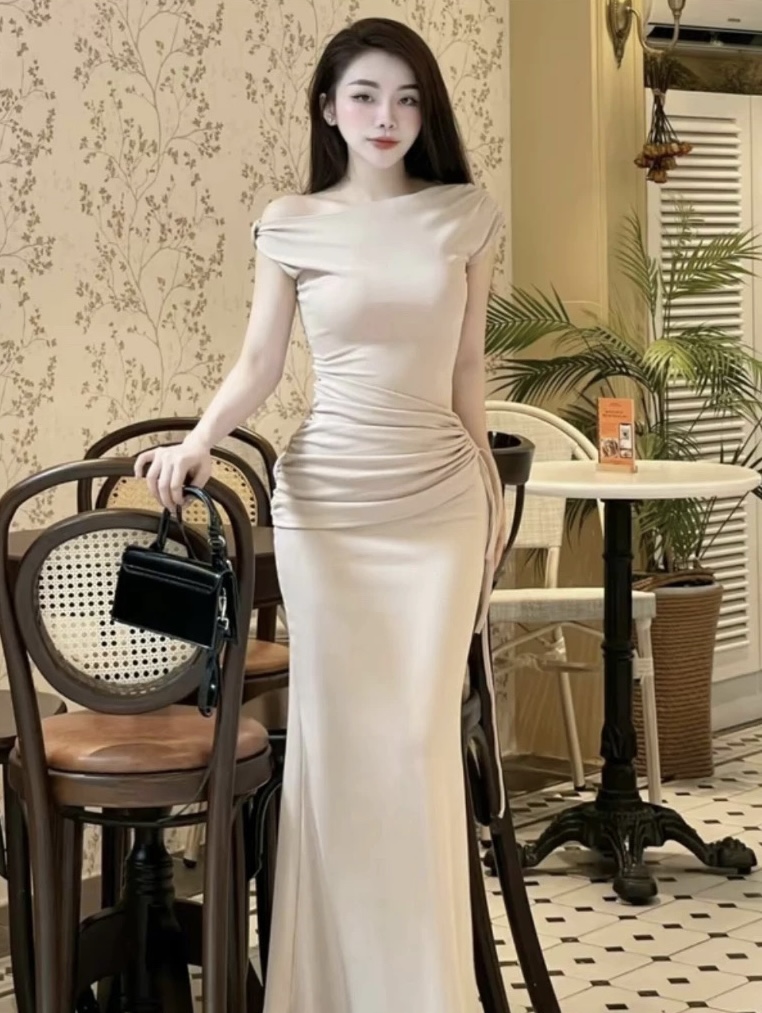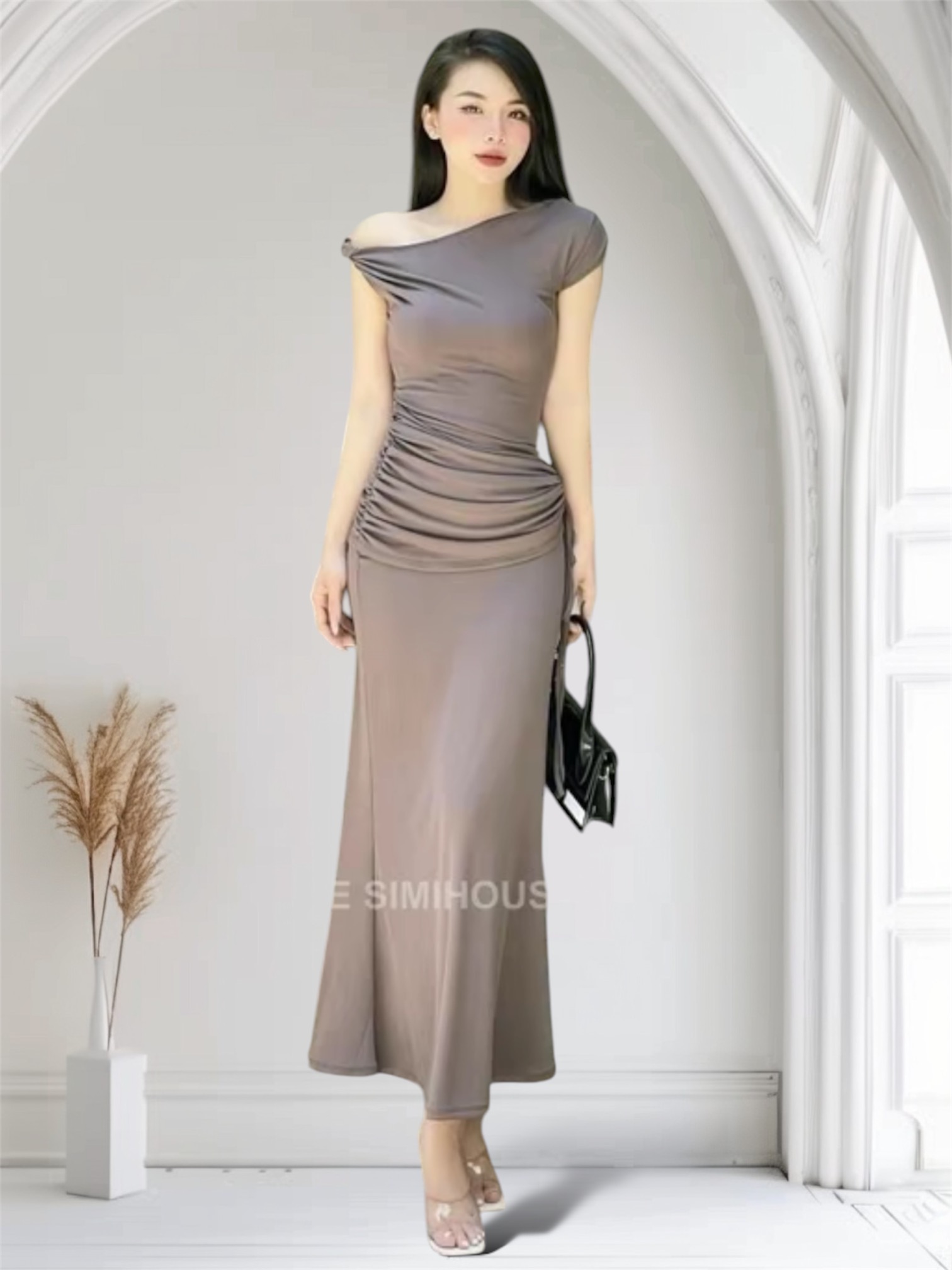 ĐẦM BODY DÀI XOẮN VAI LỆCH ĐUÔI CÁ NHÚN EO CHE KHUYẾT ĐIỂM
