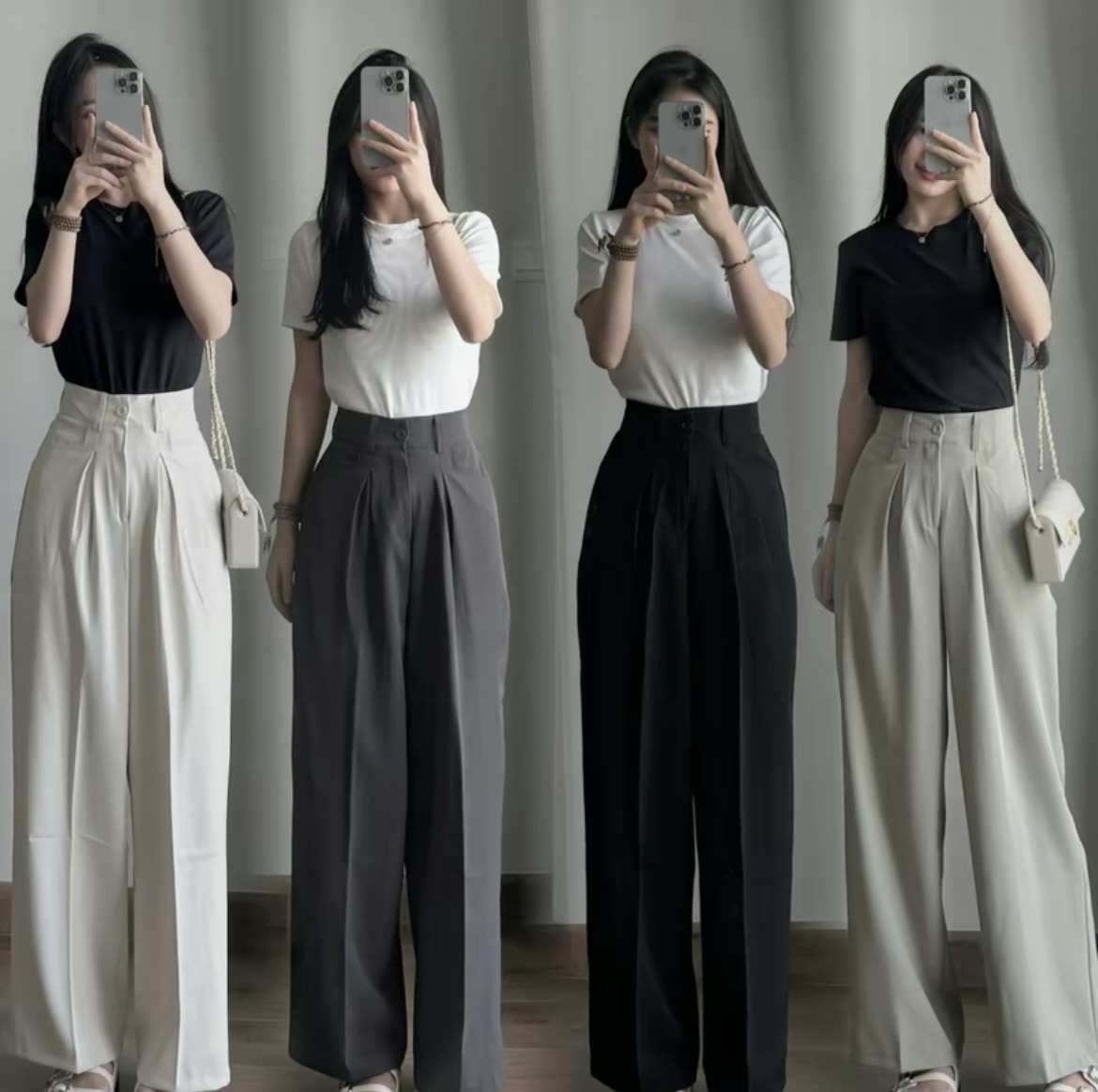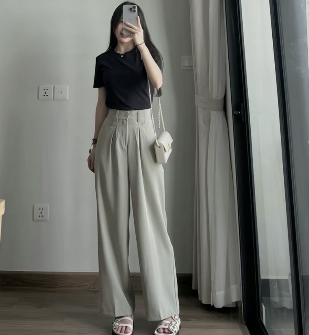 - Thiết kế ống rộng vạp cao giúp che khuyết điểm vòng 2, tạo cảm giác thoải mái khi mặc và tôn dáng. Cạp cao giúp tôn lên vòng eo, giúp người mặc trông cao hơn và che khuyết điểm vòng bụng.