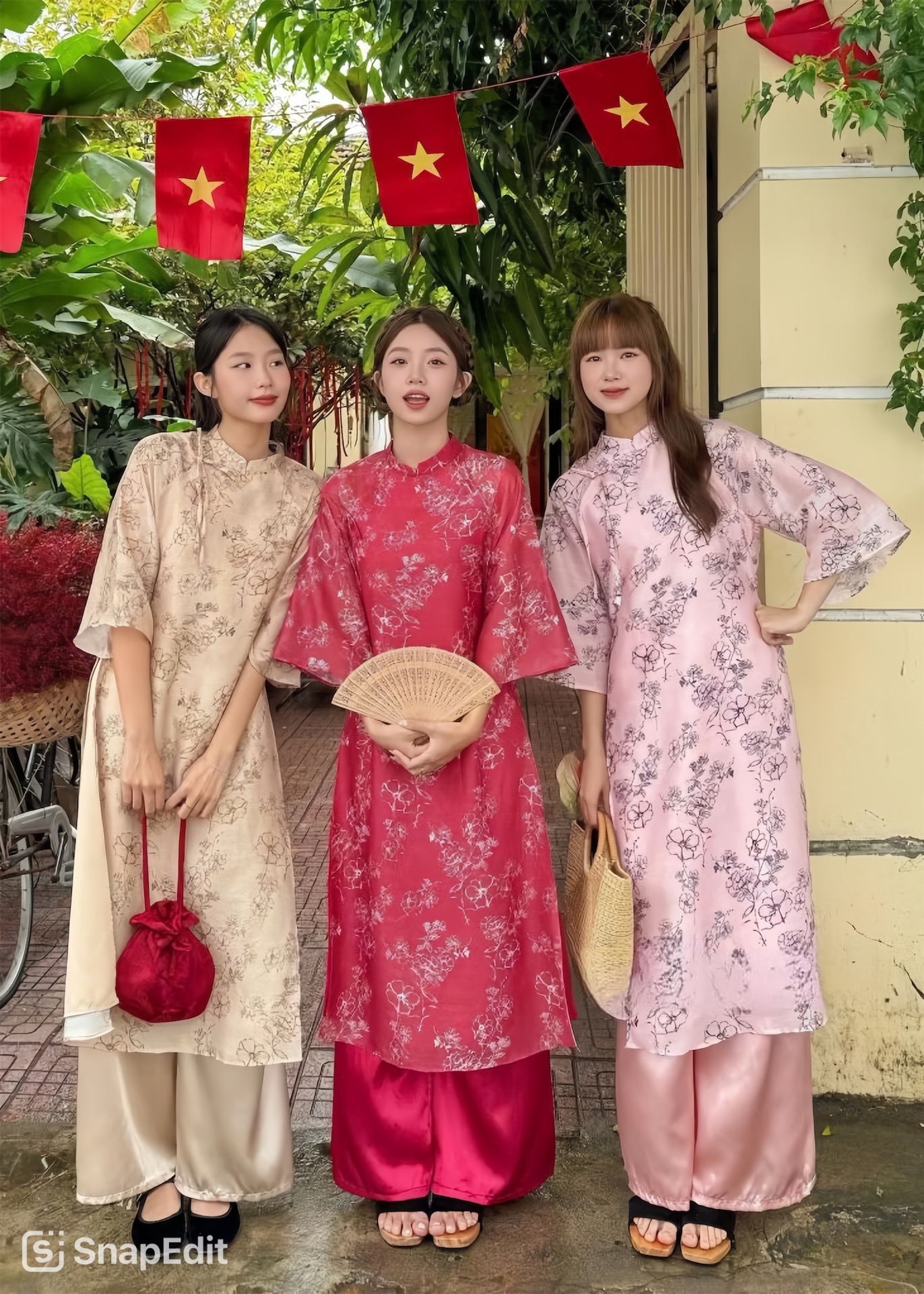 SET ÁO DÀI CÁCH TÂN VOAN TƠ 4 TÀ HỌA TIẾT HOA D.BỤT TAY LOE BUỘC NƠ