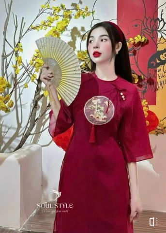 SET ÁO DÀI TƠ PHỐI HOẠ TIẾT TRÒN THÊU