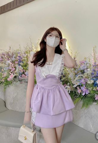 SET ĐẦM XÒE VIỀN CỔ BÈO TRẮNG KÈM CHÂN VÁY