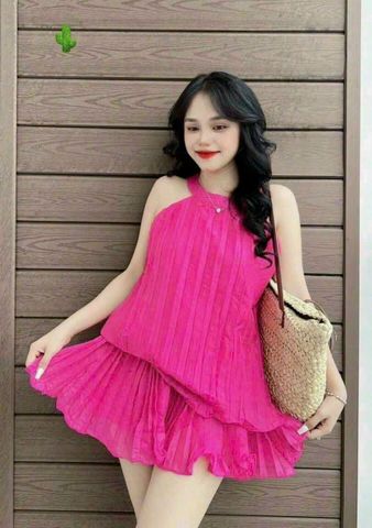 SET LỤA XẾP LI CỔ YẾM