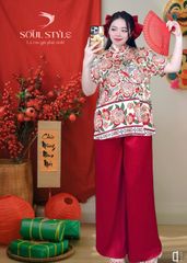 SET LỤA XƯỚC CÁCH TÂN TIPI TRẮNG PHỐI HOA ĐỎ